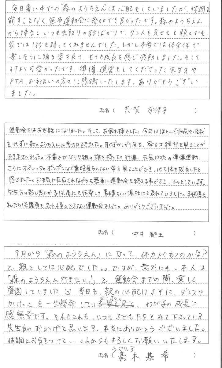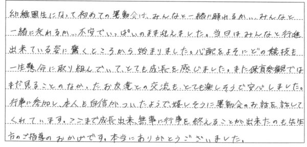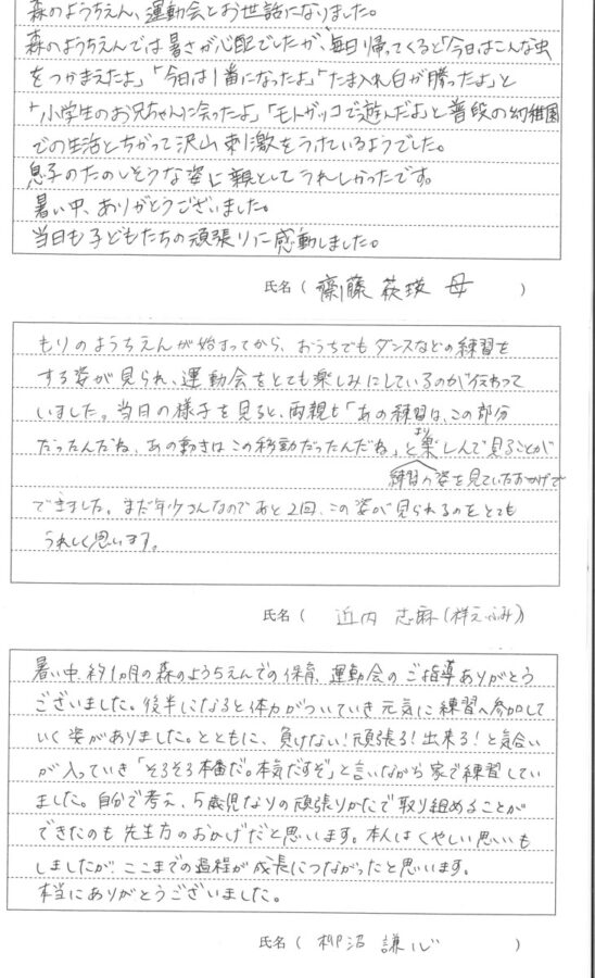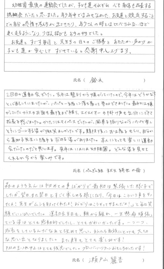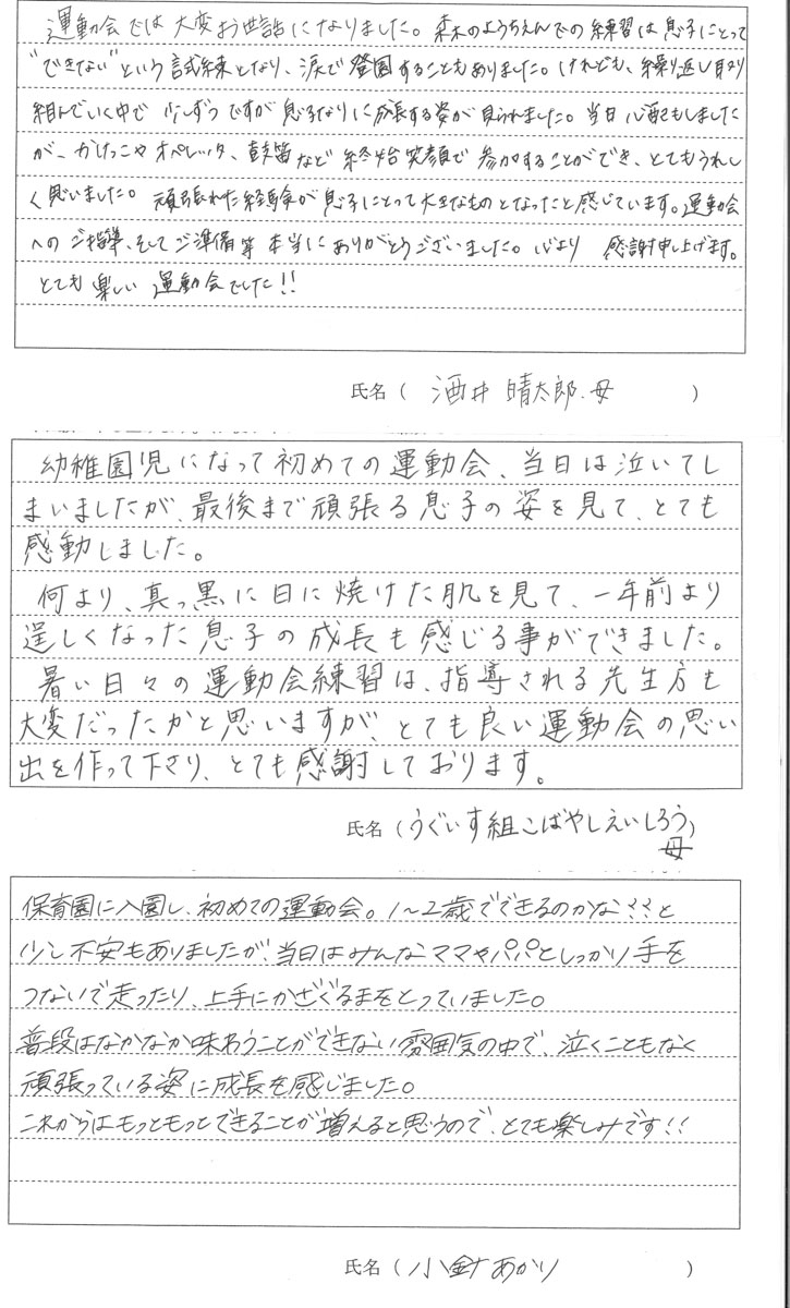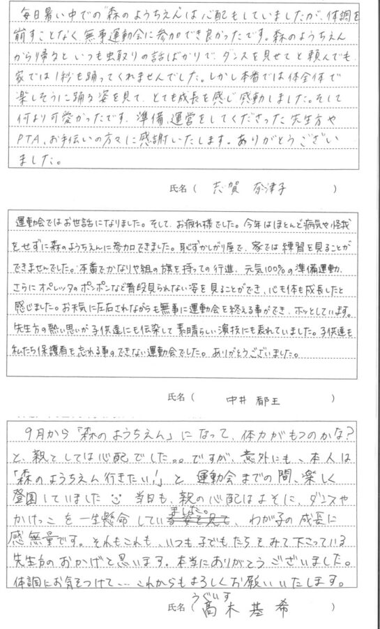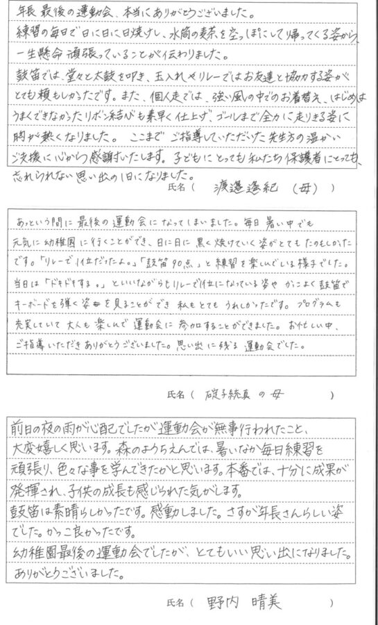 令和7年度 第56回秋の大運動会が9月21日(日)に開催されました。保護者の方に運動会についての感想を書いていただきました。その一部をご覧ください。